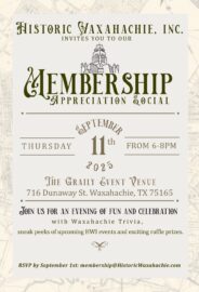 Read MoreJoin Historic Waxahachie, Inc. in our mission to preserve Waxahachie's history and heritage for past,...