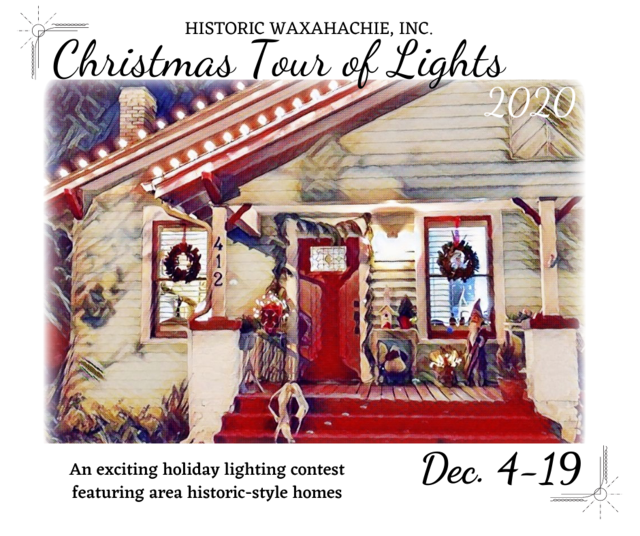 Historic Waxahachie, Inc., invited residents to participate in a holiday lighting contest and driving tour of Waxahachie’s historic style homes by decorating their homes with festive décor and of course, lights! The contest was open to all residents whose homes are 50 years or older. Any homeowner interested in participating was asked to make sure their address was visible. Onlookers were the judges as they had the opportunity to vote. A special collector’s program book and ballot boxes were located in participating Waxahachie shops and restaurants. A list of these locations can be found in the Christmas Tour of Lights Program Book.